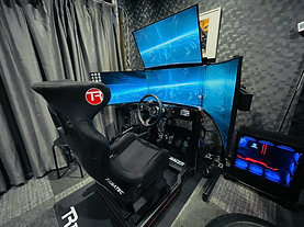 店内には4台のシムを設置しており、オーナー自慢の自作PCとトリプルモニターを完備。リアルな走行体験を提供します。