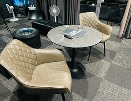 ドリフトシミュレーターを楽しむだけでなく、休憩中にもくつろげる空間として設計されています。